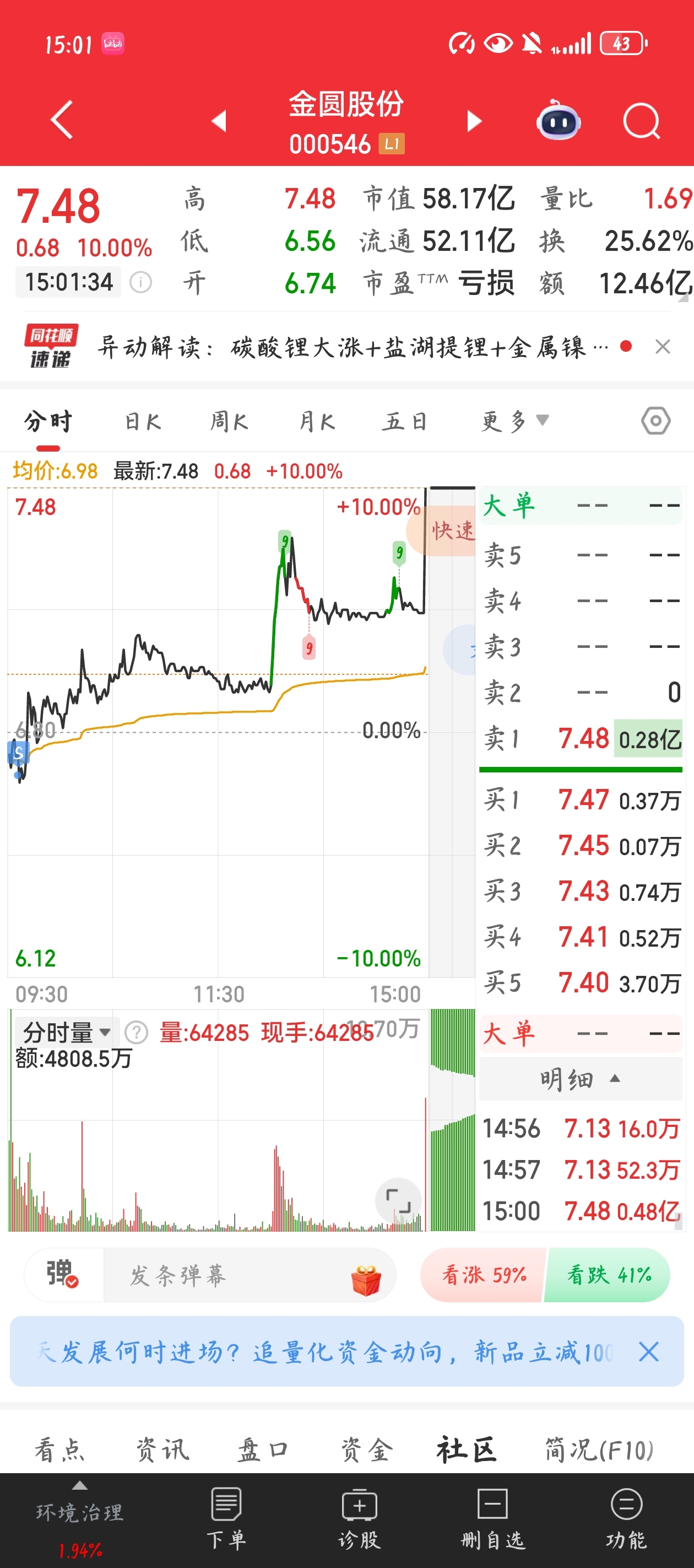 $金圆股份(SZ000546)$ 今天本来就很难受的,尾盘三分钟还对我重拳出击。