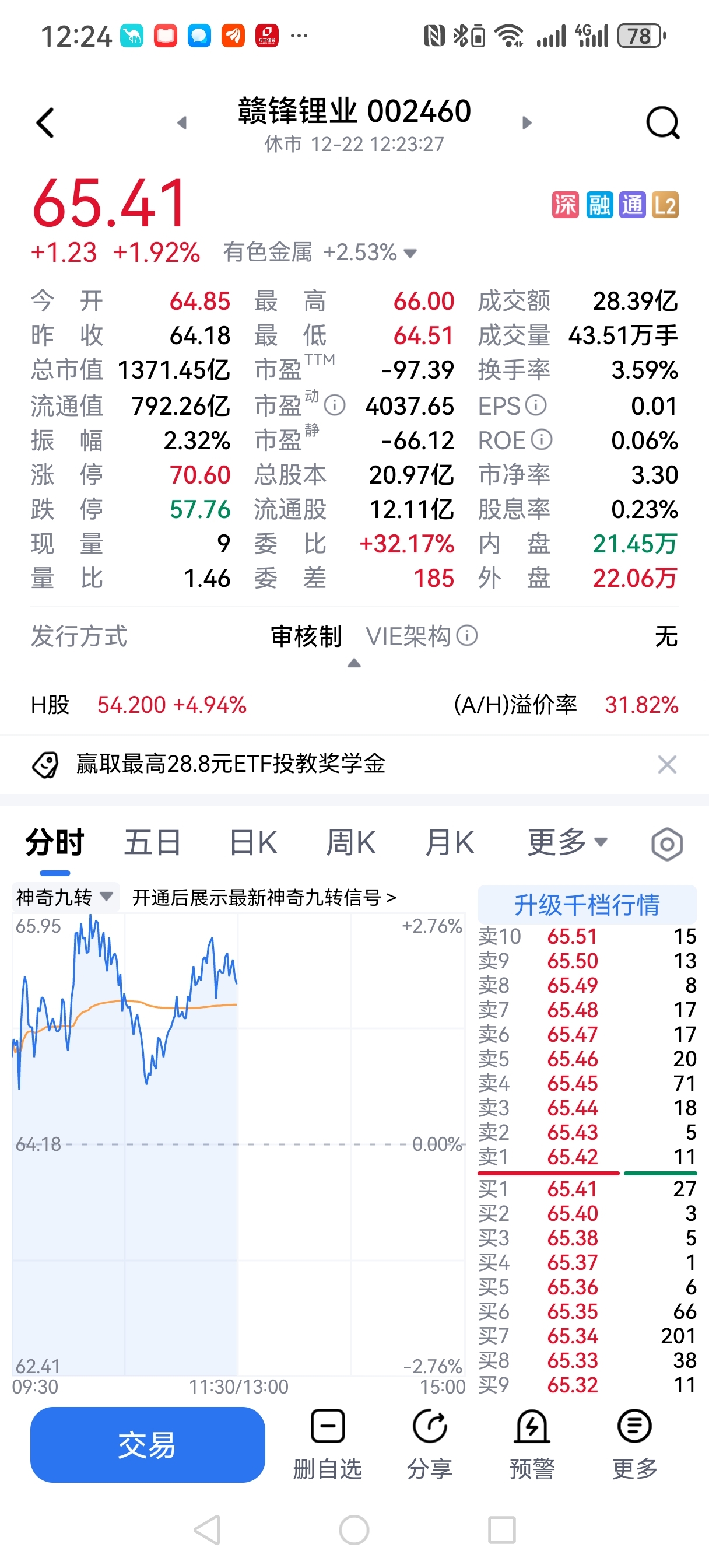 大胆的买入,不用怕。赣锋锂业和齐天锂业都60多了,他们两家还是亏损的,都涨到了6