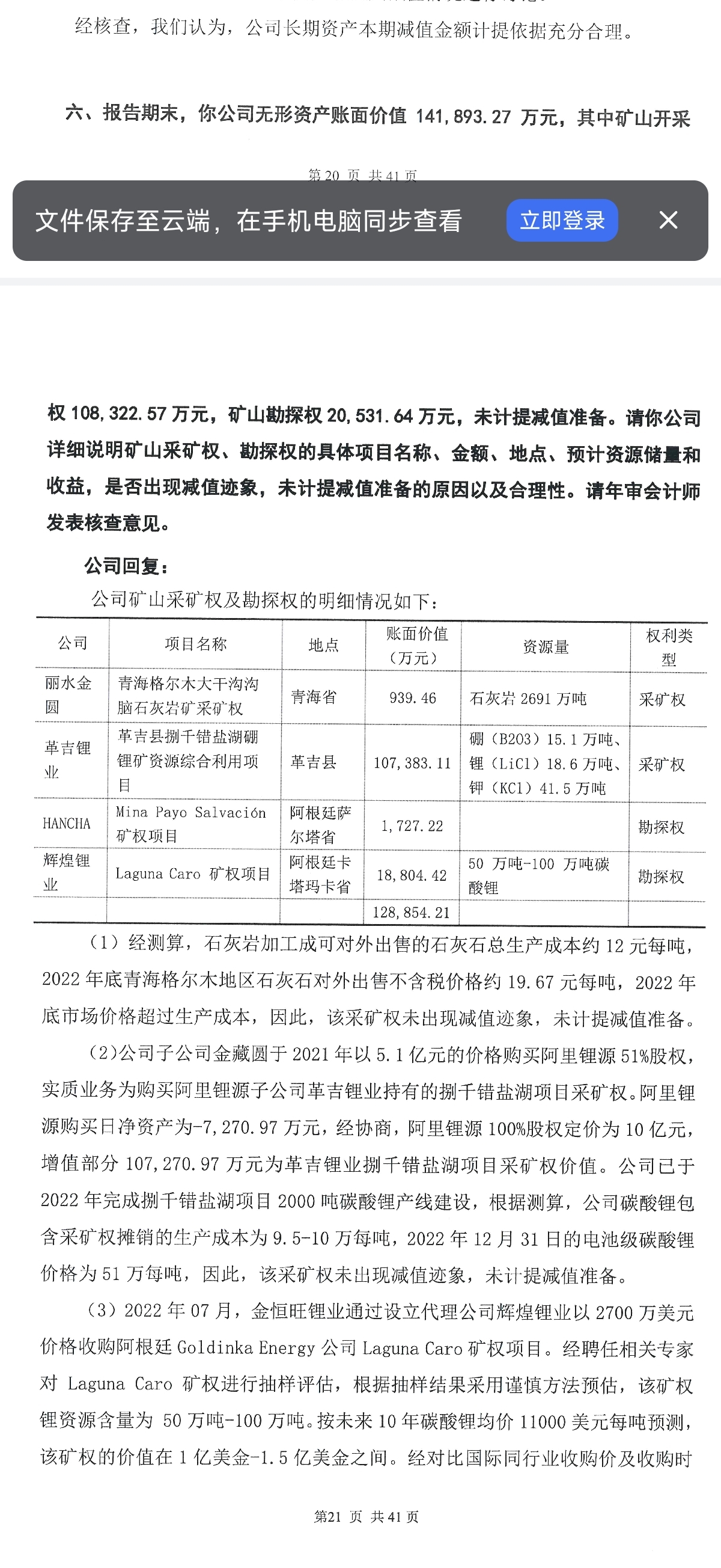 $金圆股份(SZ000546)$ 应各位要求,谈谈金圆,生产成本8万试生产,正式生产完全成本5万左右,看23年问询函,阿根廷50-100万吨碳酸锂