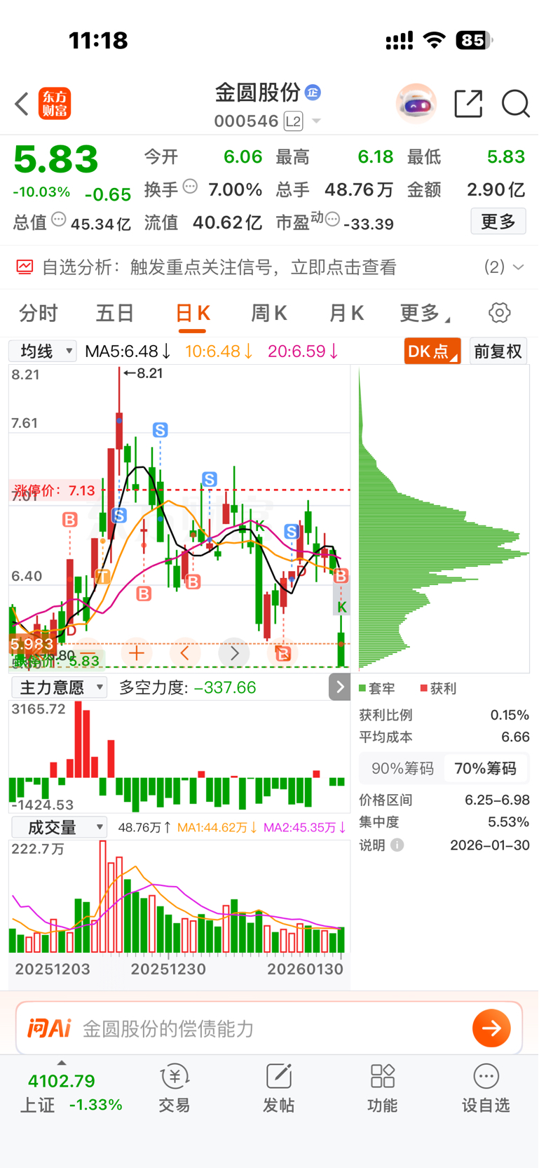 $金圆股份(SZ000546)$ 每次都让我赚钱了,希望这次也是!$通鼎互联(SZ002491)$ 早上眼看着没敢买通鼎,买的金圆,唉