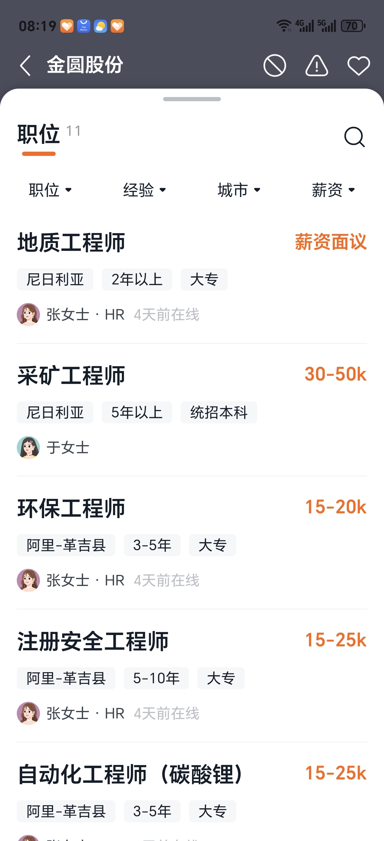 $金圆股份(SZ000546)$ 公司招聘岗位涉及尼日利亚矿山和捌千错相关