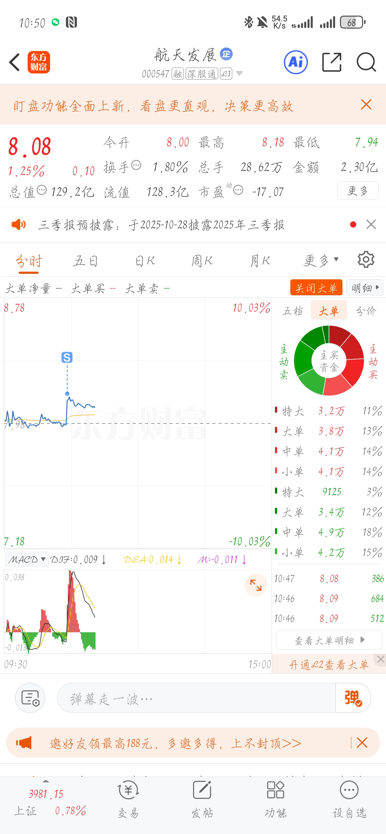 $航天发展(SZ000547)$ 昨天又卖飞了啊。卖飞了好多,看来我不适合发财