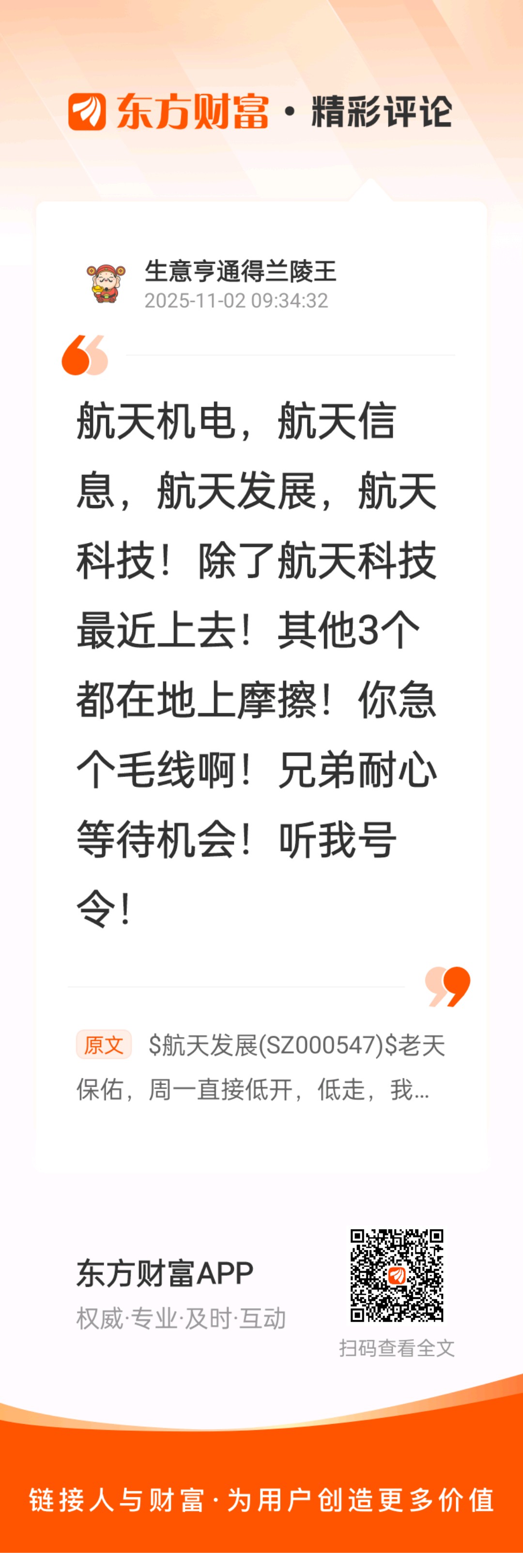 //@生意亨通得兰陵王 :航天机电,航天信息,航天发展,航天科技!除了航天科技最近上去!其他3个都在地上摩擦!你急个毛线啊!兄弟耐心等待机会!听我号令!
