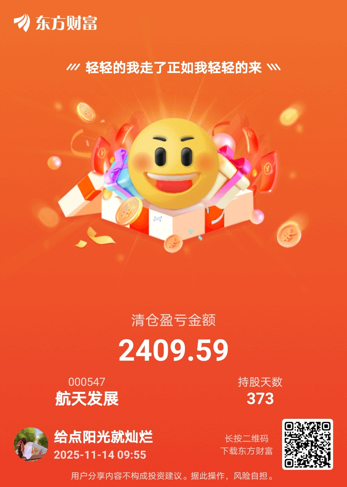 $航天发展(SZ000547)$ 就算以后涨上天,我也不留了,拿了一年股性太差,删除