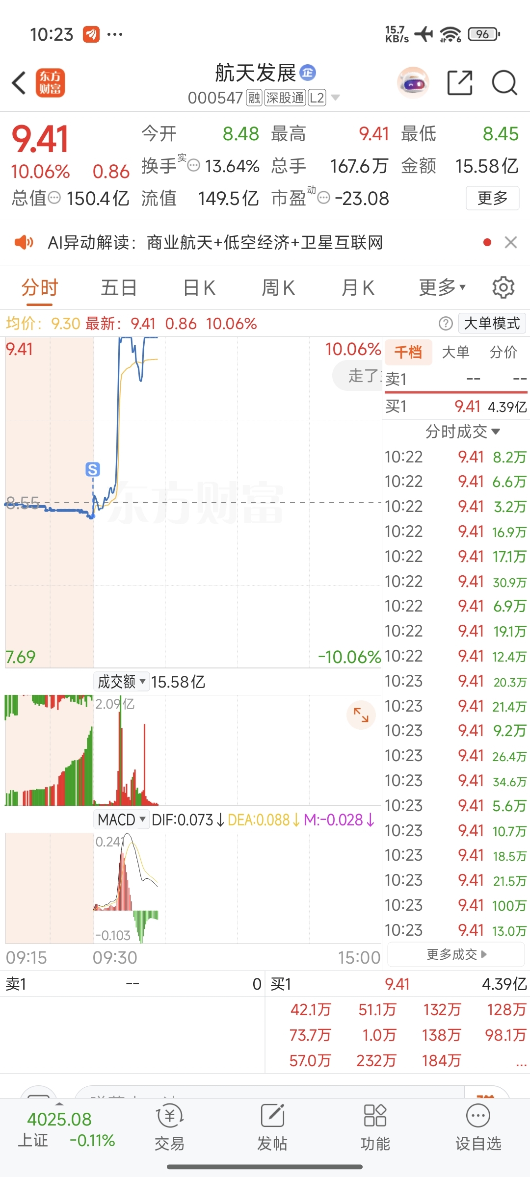 $航天发展(SZ000547)$ 昨天买的,集合竞价卖