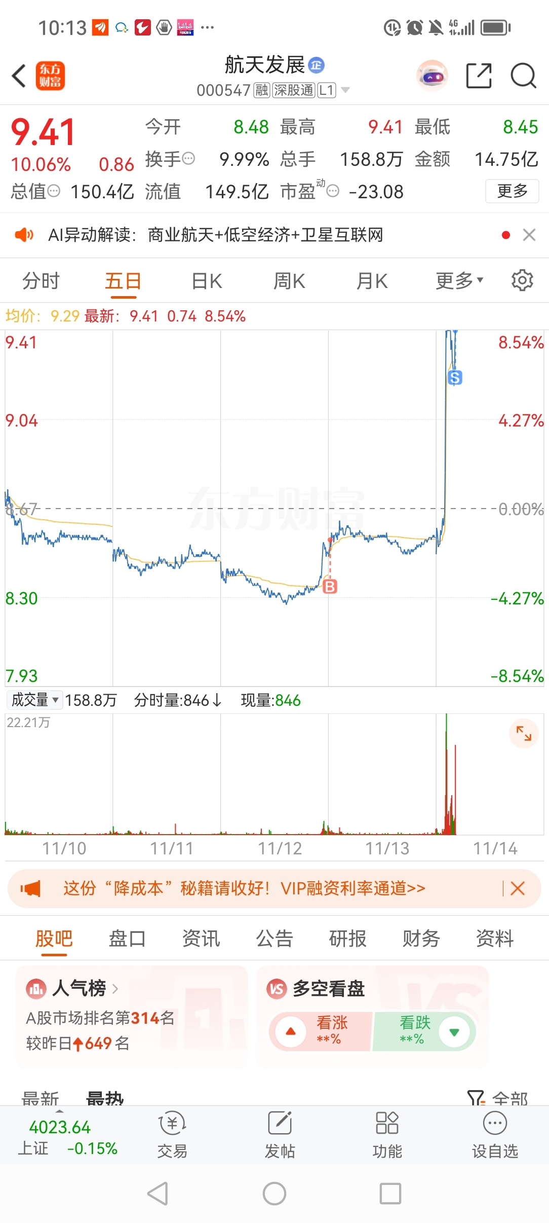 $航天发展(SZ000547)$ 昨天在群里发,买入航天发展,今天真给力