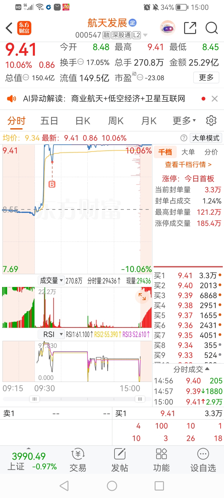 $航天发展(SZ000547)$ 尾盘集合竞价回封涨停板,主力净流入七个亿,涨停板成交量高达185.4万手!应该是主力在涨停板上吸筹!如果是出货的话就直接砸下来了!
