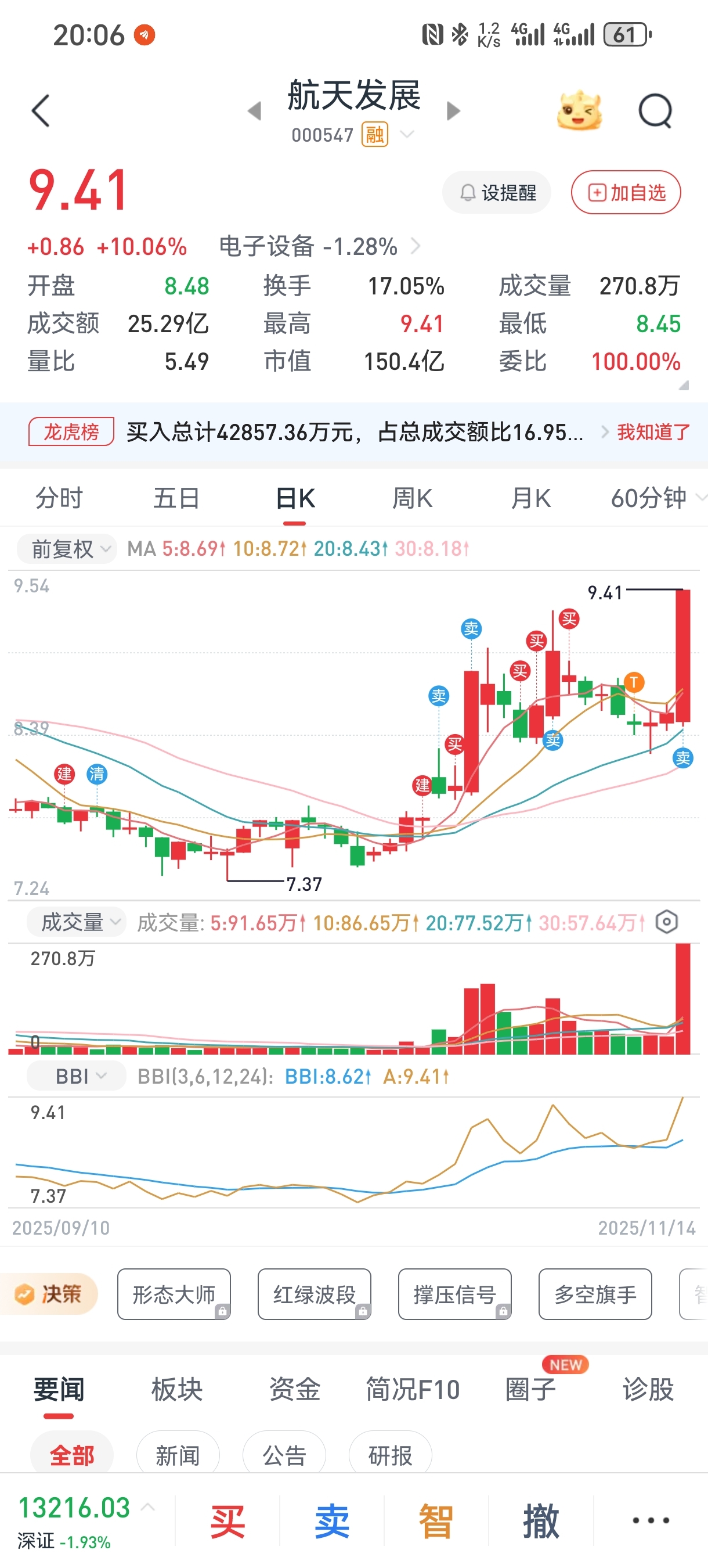 $航天发展(SZ000547)$ 留了半仓,看你表演