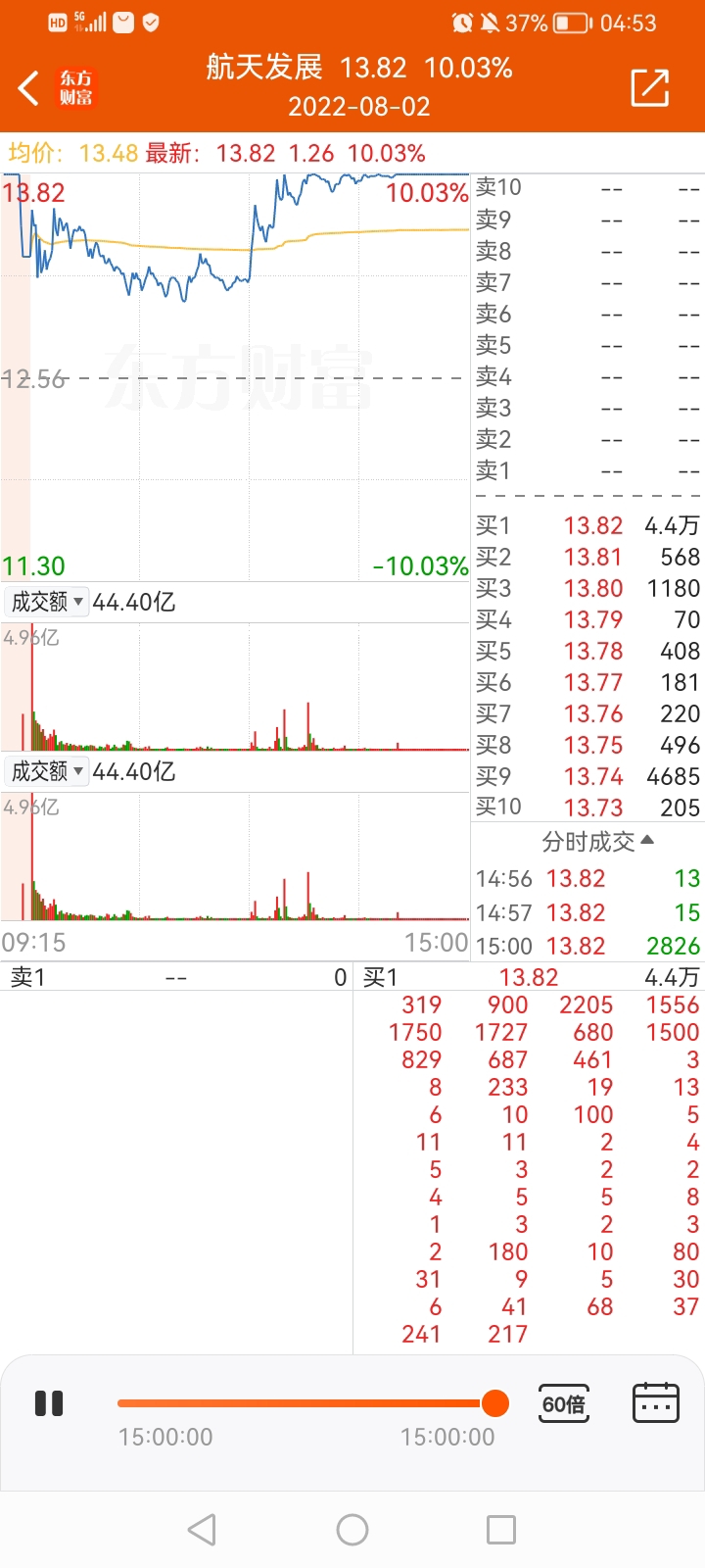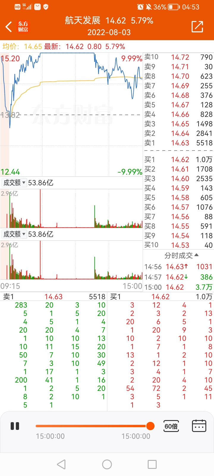 上次航天发展涨停还是在2022年8月1号!
