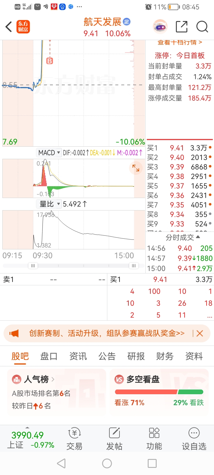 人气榜前十名只有永泰能源和航天发展是低位首板刚启动!永泰能源市值太大很难连板!航