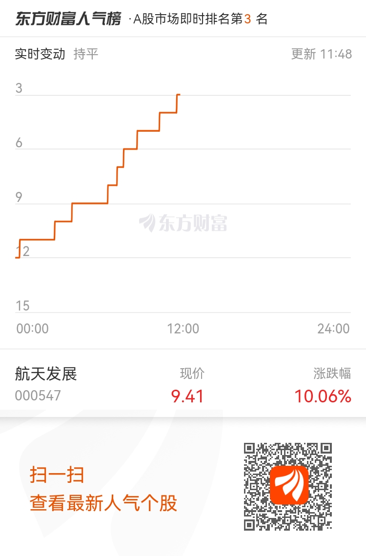 $航天发展(SZ000547)$ 航天发展人气榜第三了,榜一华夏幸福是一字板哦!人气越高顶板的人越多!