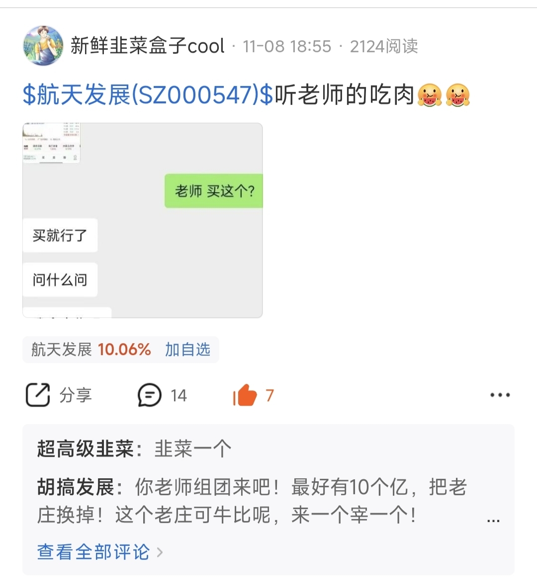 $航天发展(SZ000547)$ 当时嘲笑我的朋友还在吗?