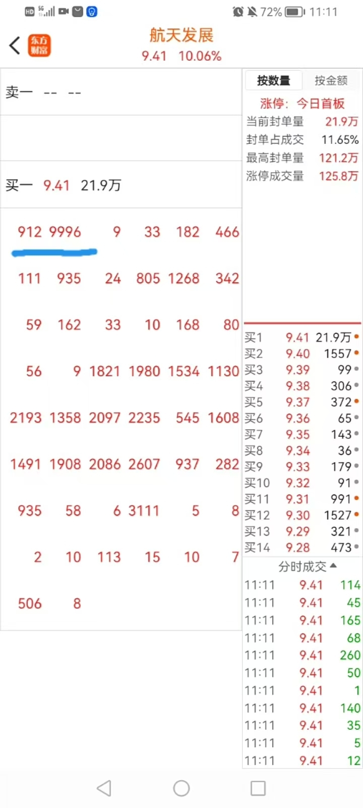 $航天发展(SZ000547)$ 周五航天发展涨停板上成交了171万手筹码,敢打板的散户特别少根本吃不下这么多筹码!而且好多九千手大单涨停板上成交买入,那么多9999手单打板会埋自己???明天集合竞价五个点以下都是上车的机会!