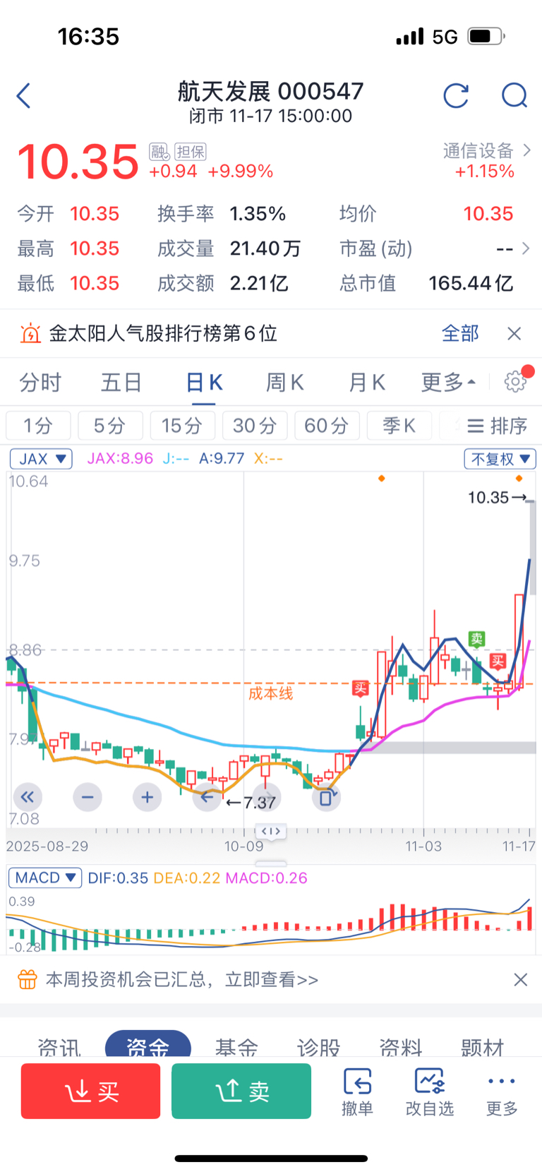 $航天发展(SZ000547)$ 应该这周你们都买不到了