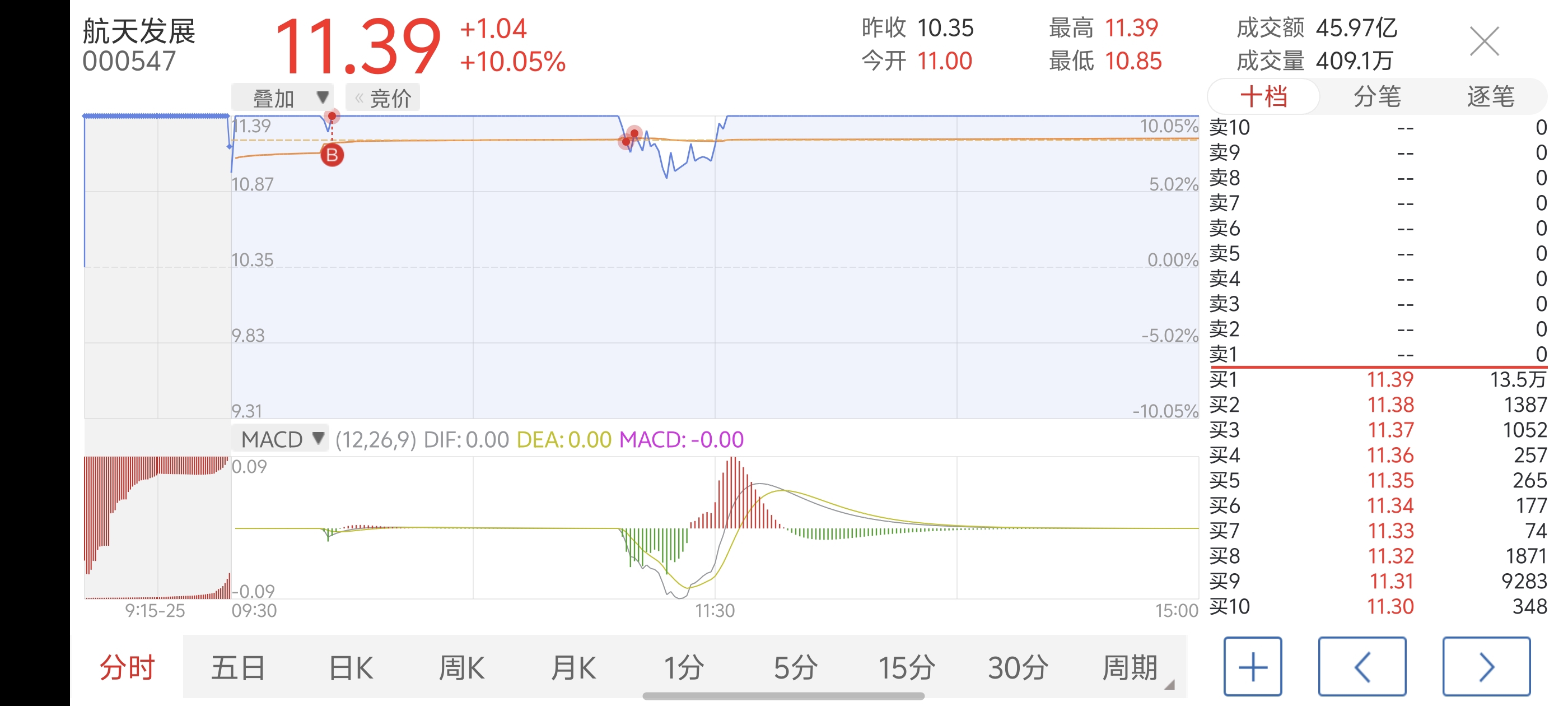 $航天发展(SZ000547)$ 总说分仓操作,又一次满上了,只求让我对一次!
