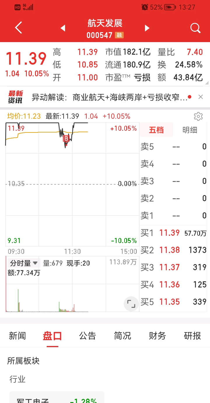 $航天发展(SZ000547)$ 我说怎么没跟着高标调整,原来陈小羣来了,我也进了今天