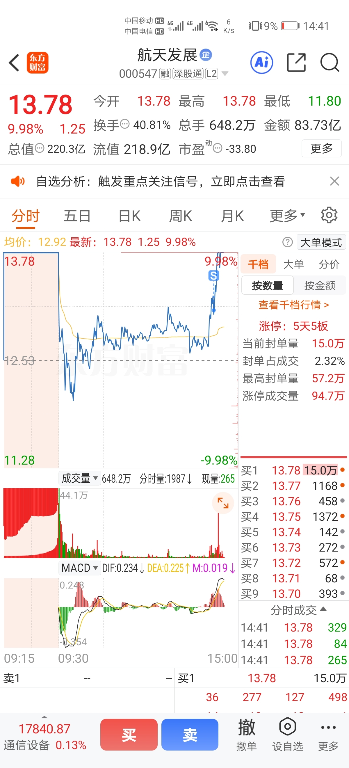 $航天发展(SZ000547)$ 实盘记录带铁粉回本第二天,已经格局到很尽力了,留下的发财