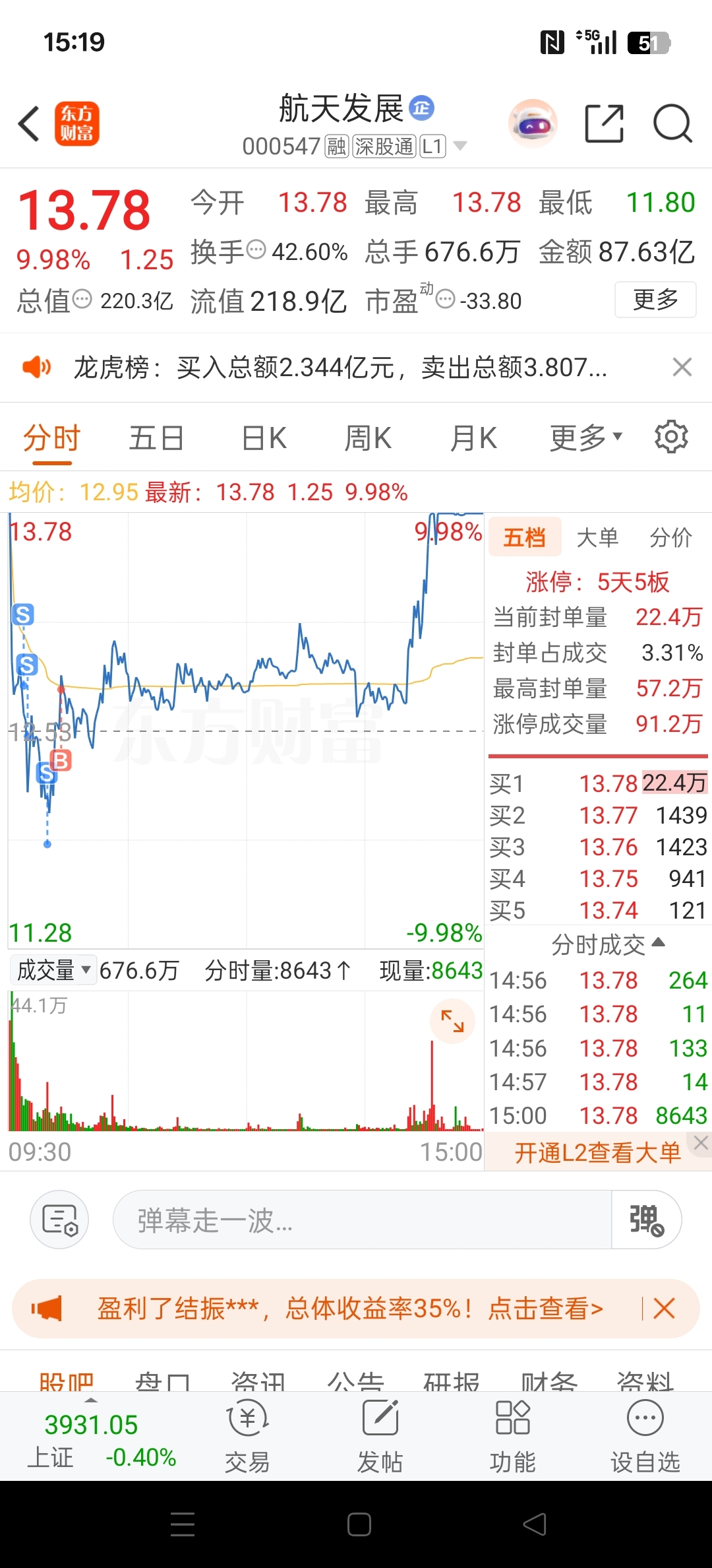 $航天发展(SZ000547)$ 就不能操作,一操作就成s.b,留利润在里面不动了。。