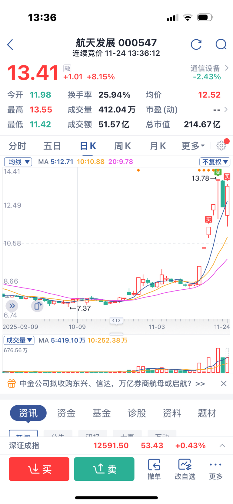 $航天发展(SZ000547)$ 哎周四一字板一忙把他给忘了。丢了好多点。