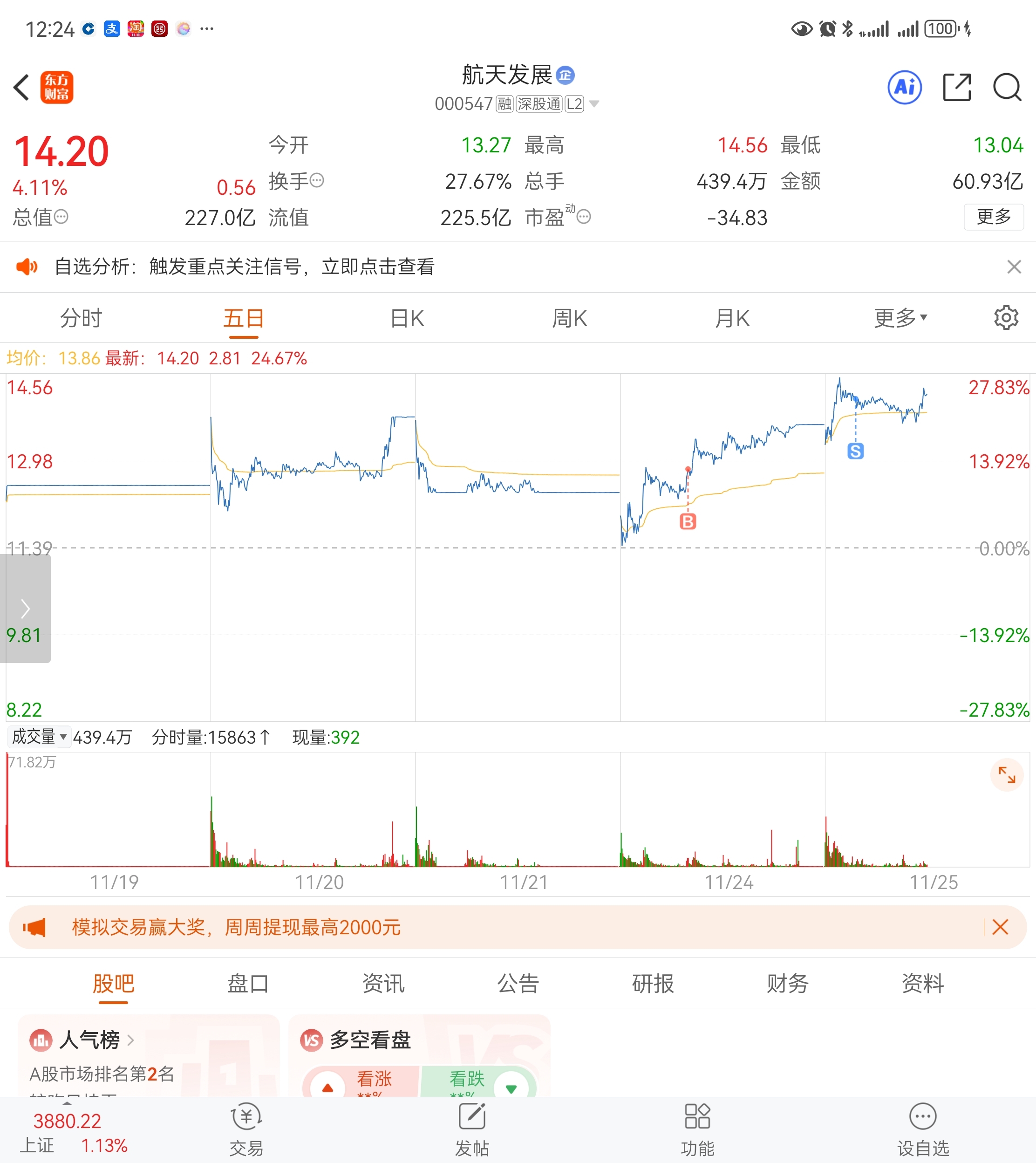 $航天发展(SZ000547)$ 搞一点点走人,不等小群了。