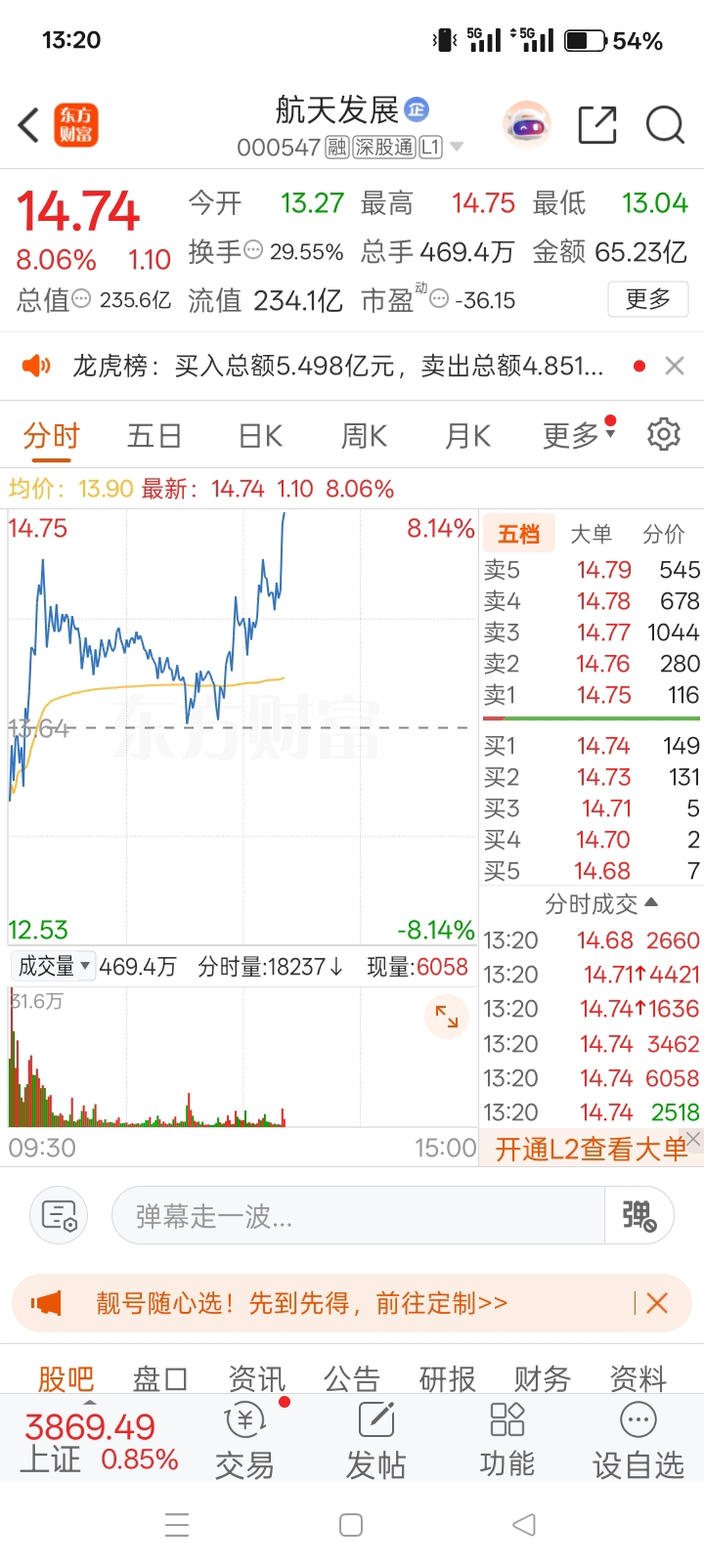 $航天发展(SZ000547)$ 上午通知安排13.6进的兄弟们,都进去了吧,飞起来了,阳包阴趋势,多头向上,继续关注