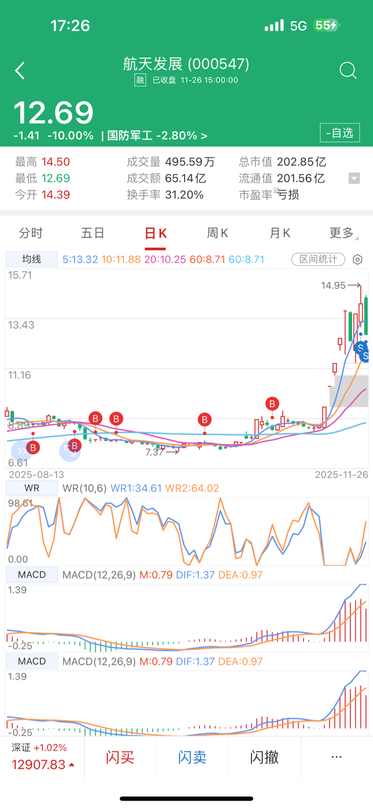 $航天发展(SZ000547)$ 感谢群总没直接核按钮,给了两天的时间让跑,虽然利润回撤了不少,但总体还是赚到了,知足了