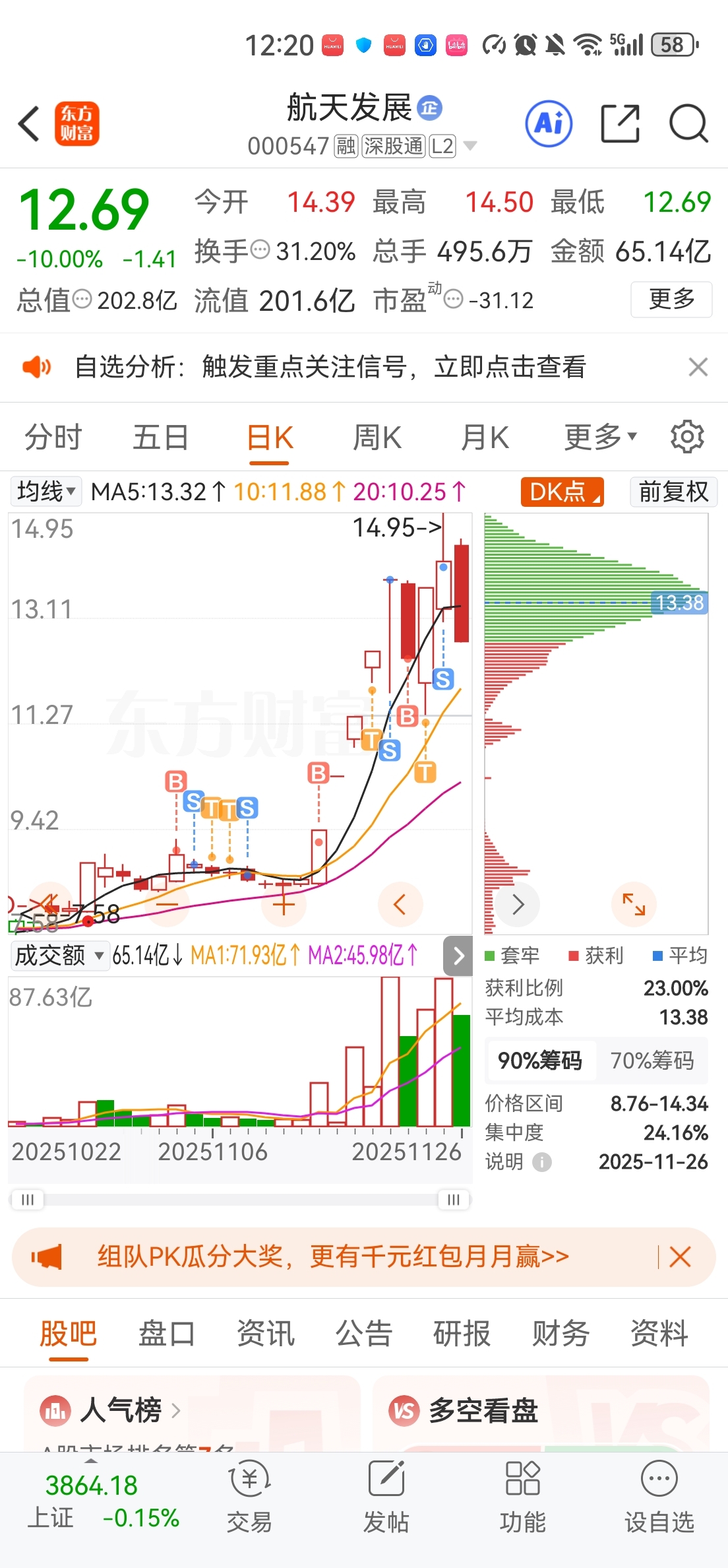 $航天发展(SZ000547)$ 后期能不能玩看明天走势了
