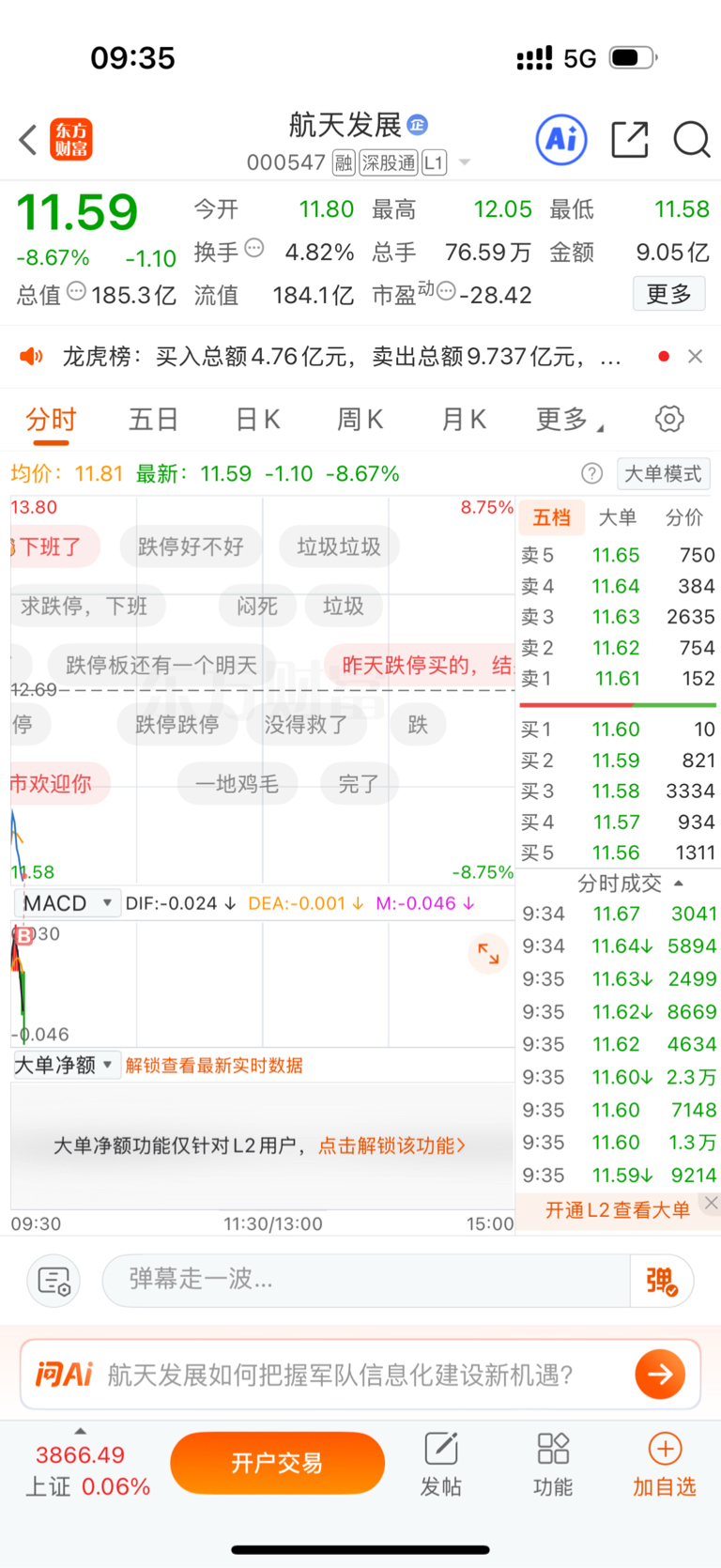 11.59抄底$航天发展(SZ000547)$ #强势机会# #实盘记录# #投资干货# #投资随笔#