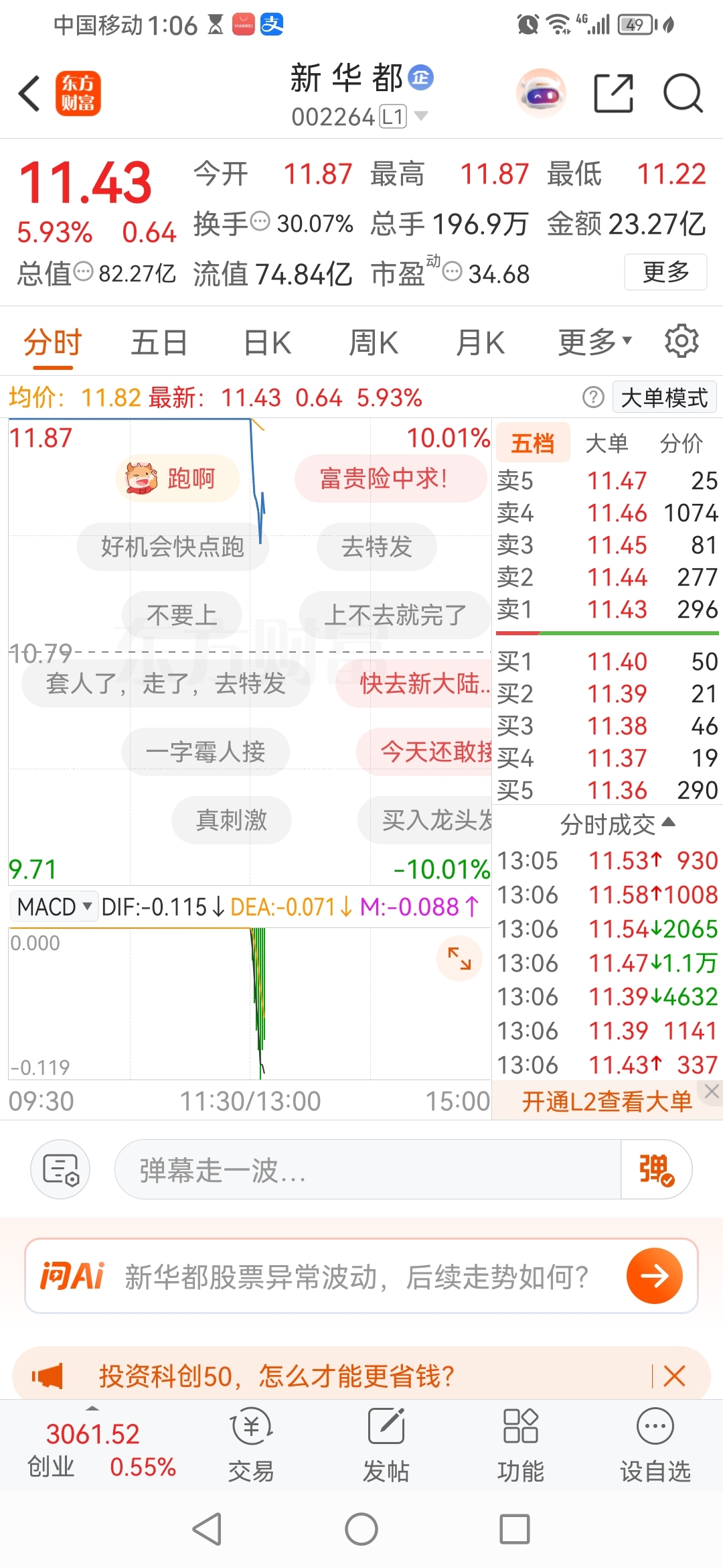 温馨提示: 1.根据《证券法》规定,禁止编造、传播虚假信息或者误导性信息,扰乱证券市场;2.用户在本社区发表的所有资料、言论等仅代表个人观点,与本网站立场无关,不对您构成任何投资建议。用户应基于自己的独立判断,自行决定证券投资并承担相应风险。《东方财富社区管理规定》