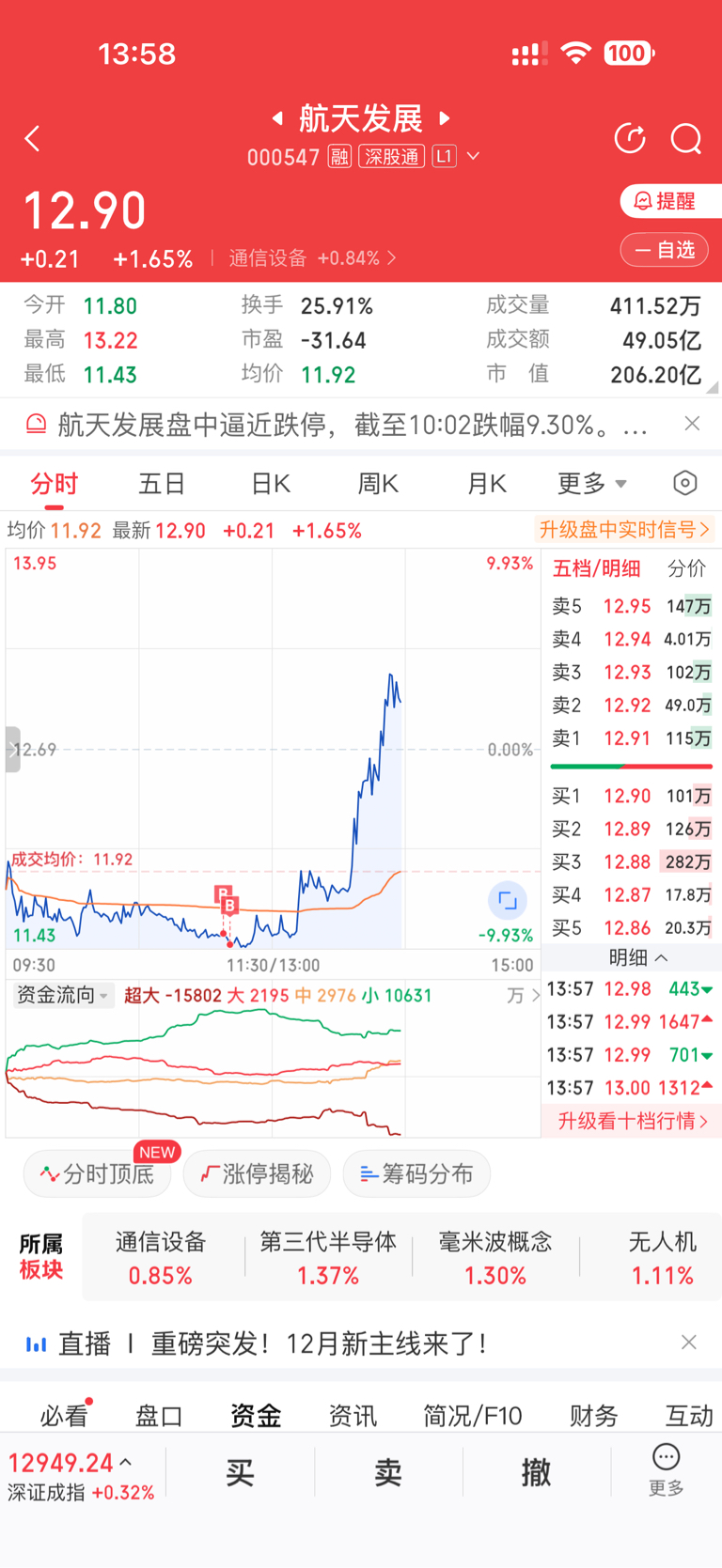 $航天发展(SZ000547)$ 比较成功 就是买少了