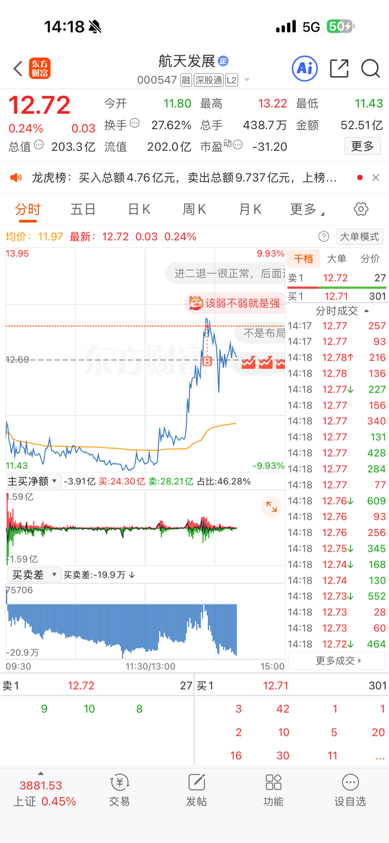 $航天发展(SZ000547)$ 10手就买崩你,小样儿