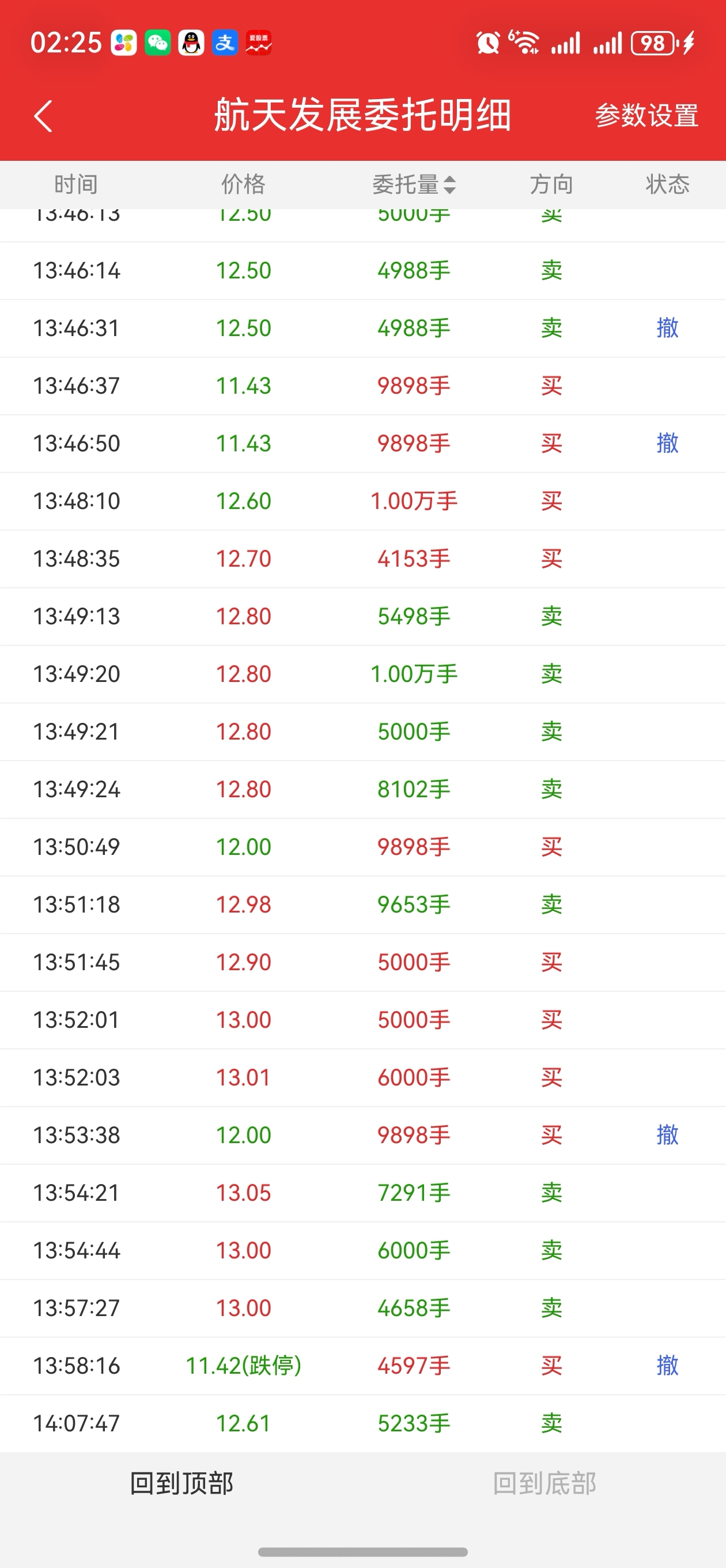 $航天发展(SZ000547)$ 这里有个9898手的,坏得很。一直挂底单,一支又撤。