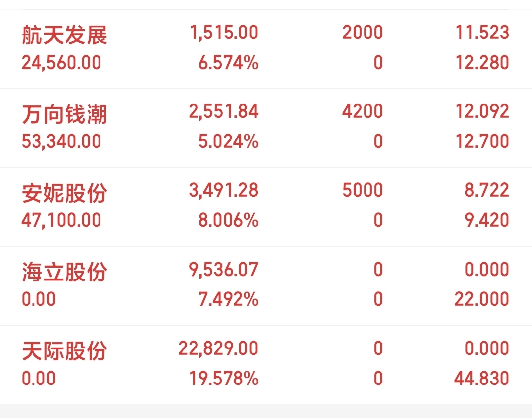 今日持仓:海立股份,天际股份,航天发展,安妮股份,万向钱潮