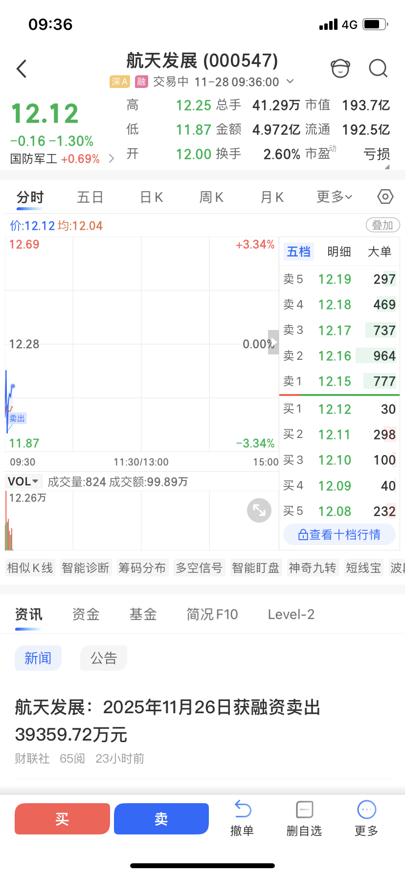 $航天发展(SZ000547)$ 卖了就拉,每天都这样