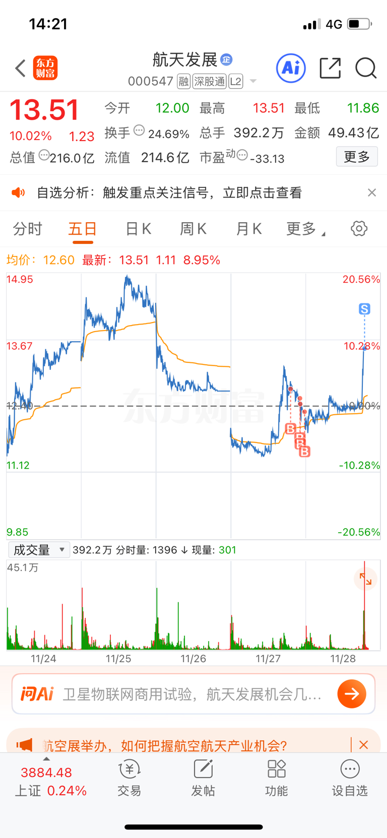 $航天发展(SZ000547)$ 感谢主力,留下的大佬们发财