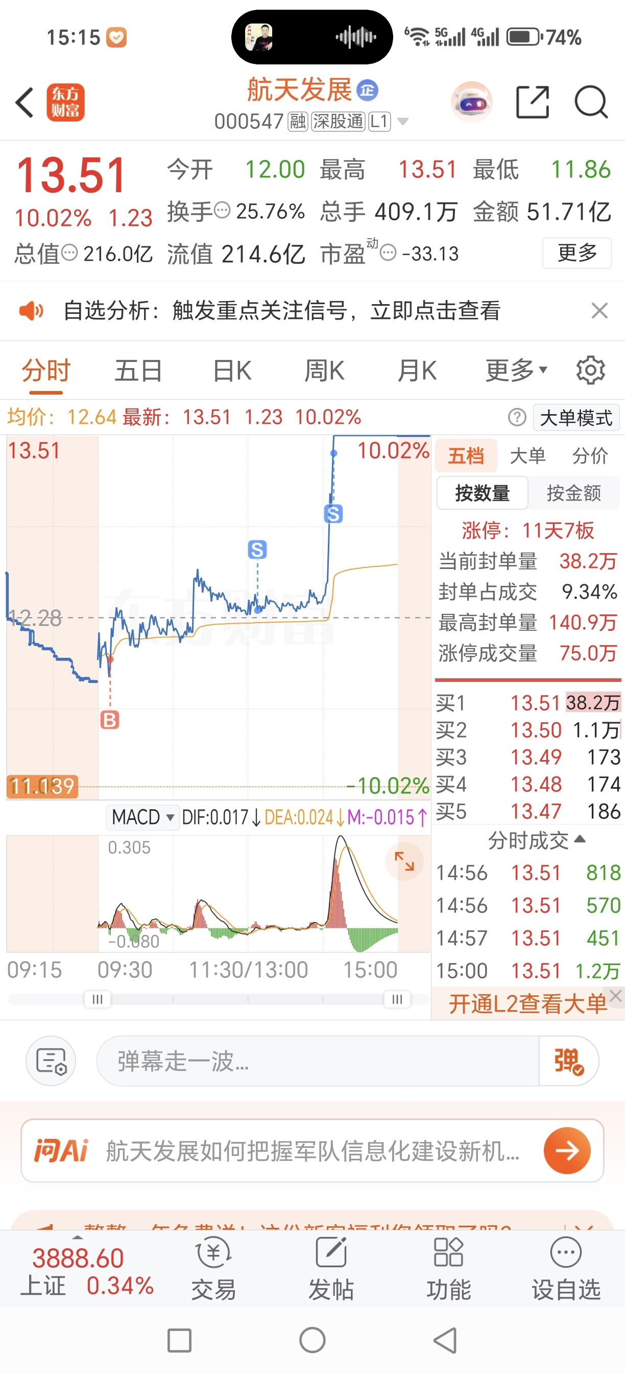 $航天发展(SZ000547)$ 知足了吧,还有三分之一仓位