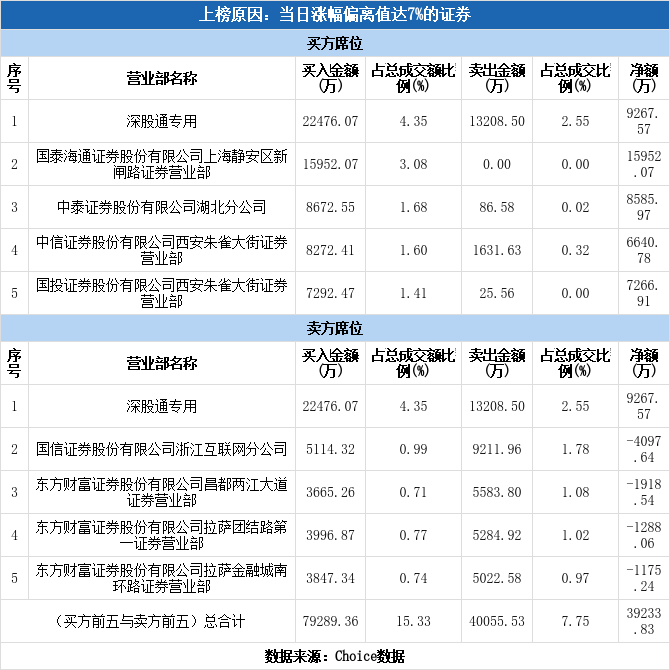 深股通现身龙虎榜,航天发展涨停(11-28)