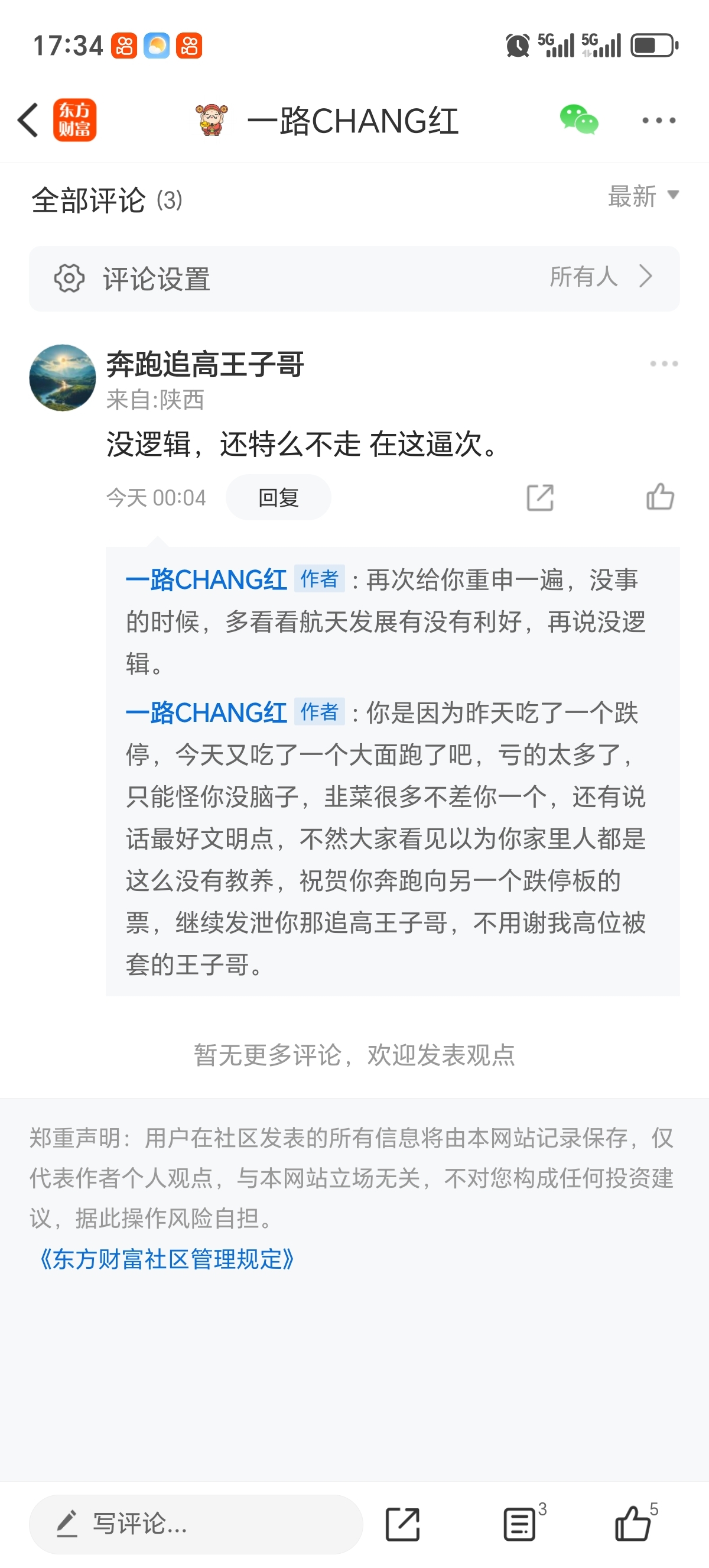 我昨天晚上说航天发展走势没有结束,今天会继续上攻,还喷我,你出来