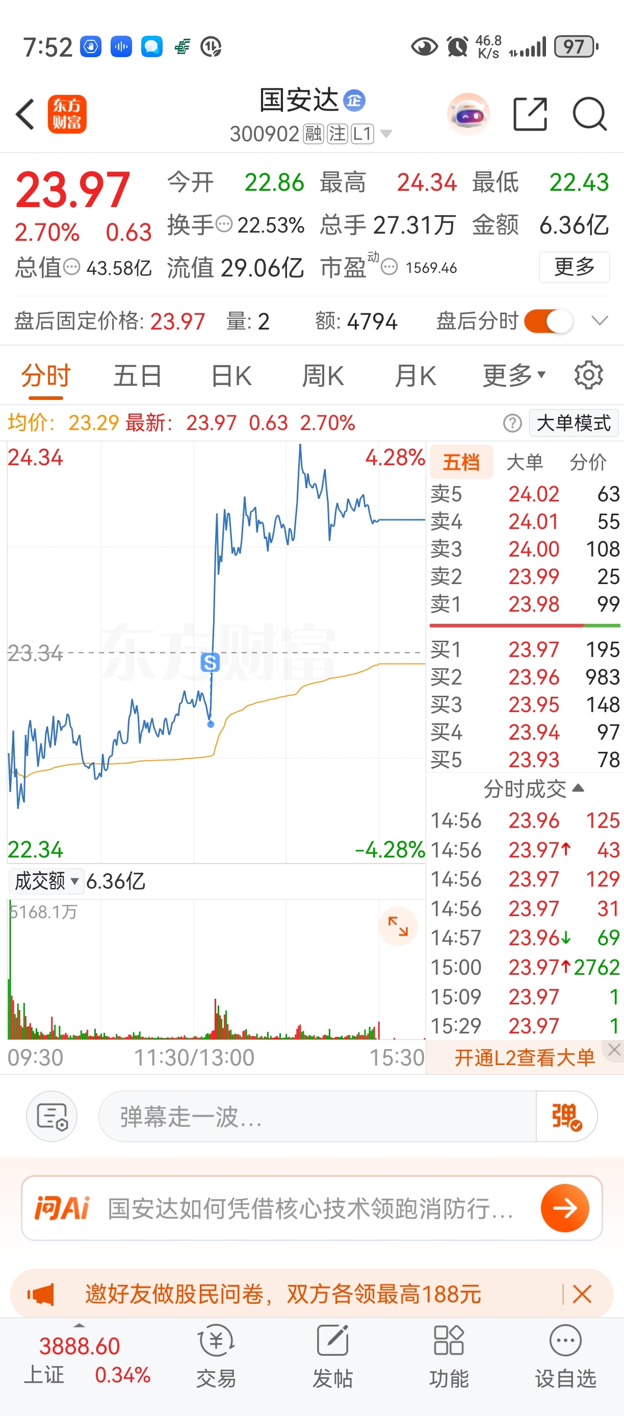 $航天发展(SZ000547)$ 今天你们都赚钱了,唯独我在国安达亏钱,其实也不是亏钱难受,是比吃S还难受