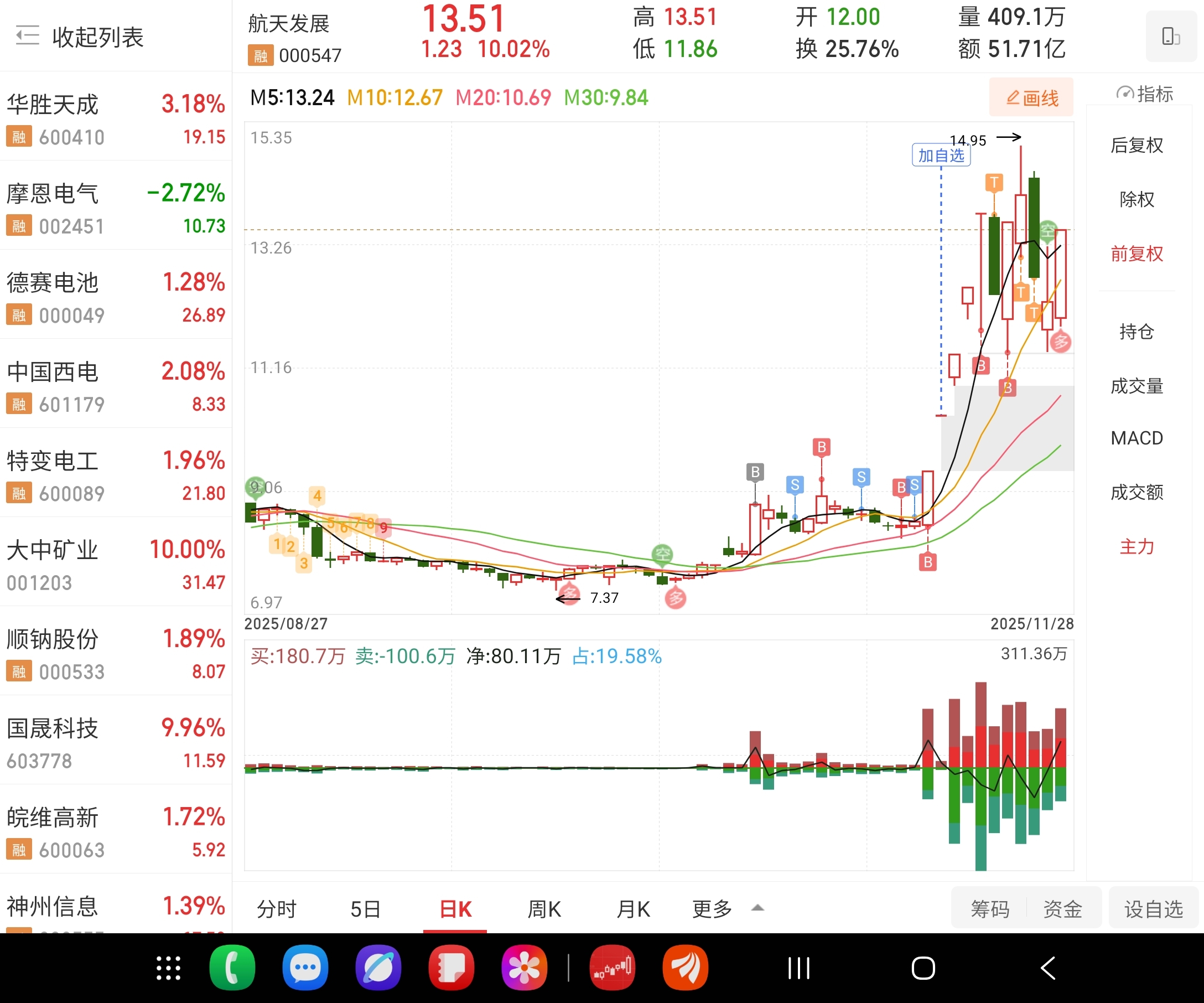 $航天发展(SZ000547)$ 作为小散的我说实在很伤心,两个地板豁了2万手,还好今天早上加了2000手,利润也回撤了20个点。主力在来两个两个一字,