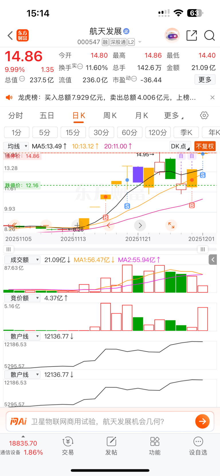 $航天发展(SZ000547)$ 上次赚一个板,这次差不多两个板,每次都是半仓,就不能让我全仓吃一次肉啊