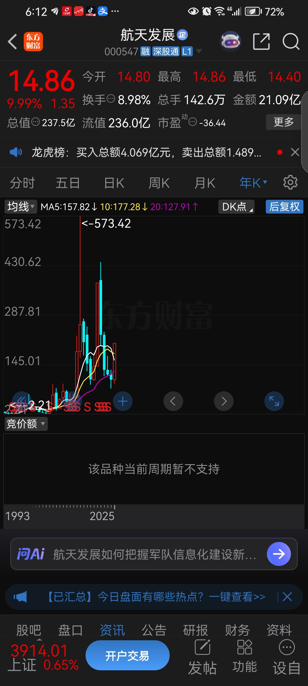 航天发展虽然近期涨幅很大,但是他仍然处于历史低位!水往低处流!
