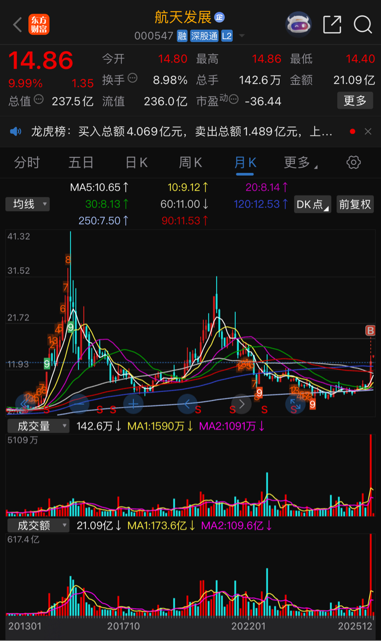 $航天发展(SZ000547)$ 这一波行情能达到之前两波行情的高点或突破形成W底一路走高!股友们拿好筹码哦!