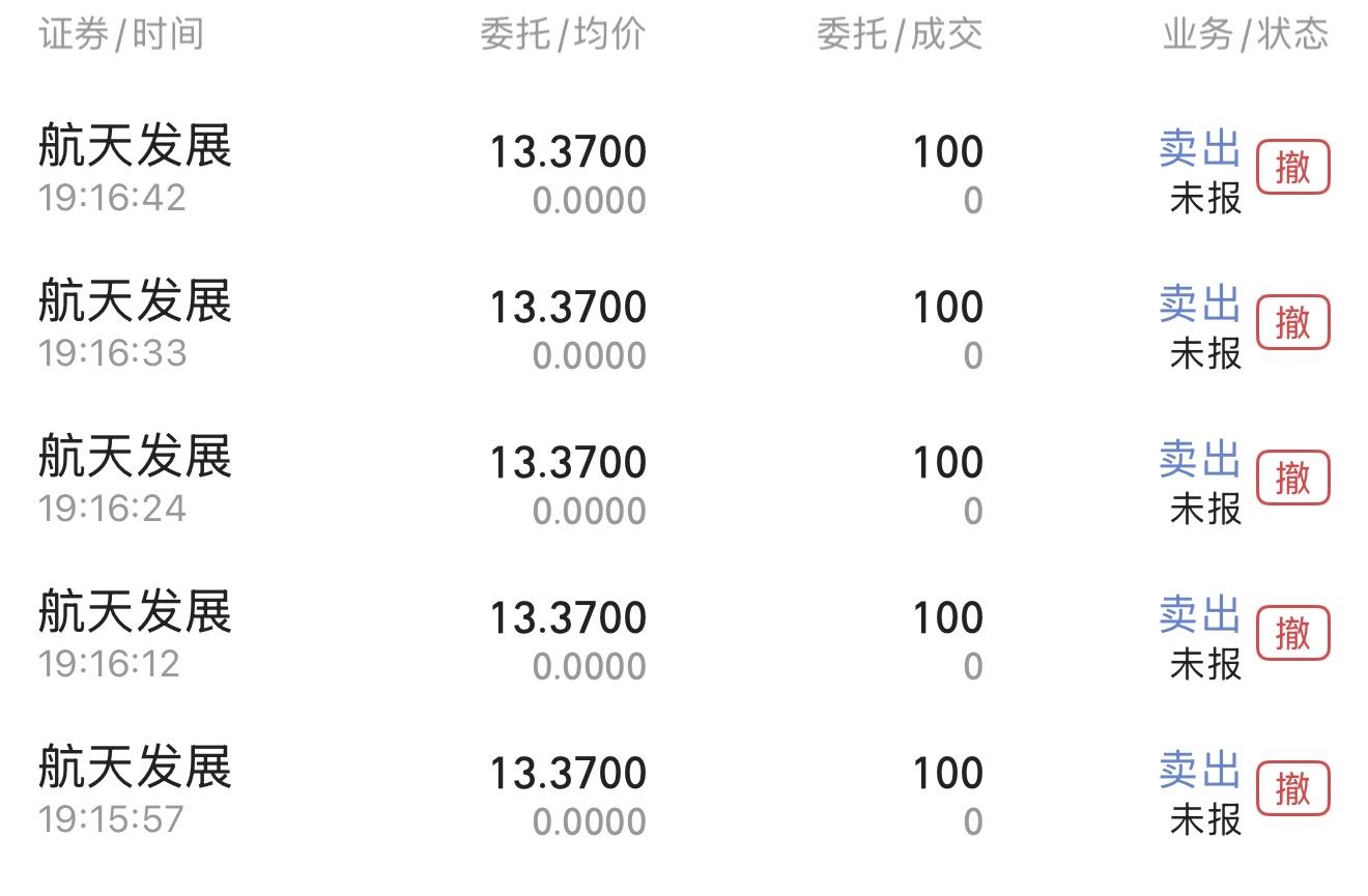 $航天发展(SZ000547)$ 抓紧跑路,已挂隔夜跌停单