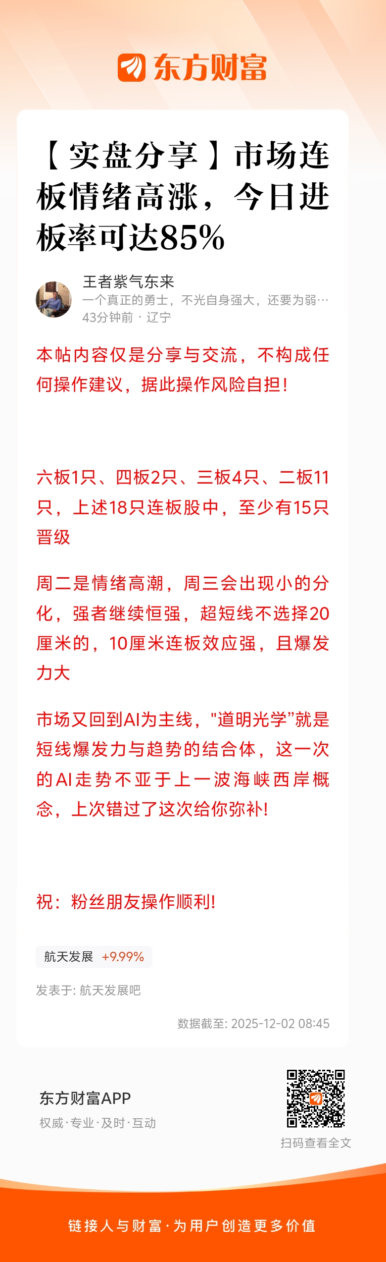 温馨提示: 1.根据《证券法》规定,禁止编造、传播虚假信息或者误导性信息,扰乱证券市场;2.用户在本社区发表的所有资料、言论等仅代表个人观点,与本网站立场无关,不对您构成任何投资建议。用户应基于自己的独立判断,自行决定证券投资并承担相应风险。《东方财富社区管理规定》