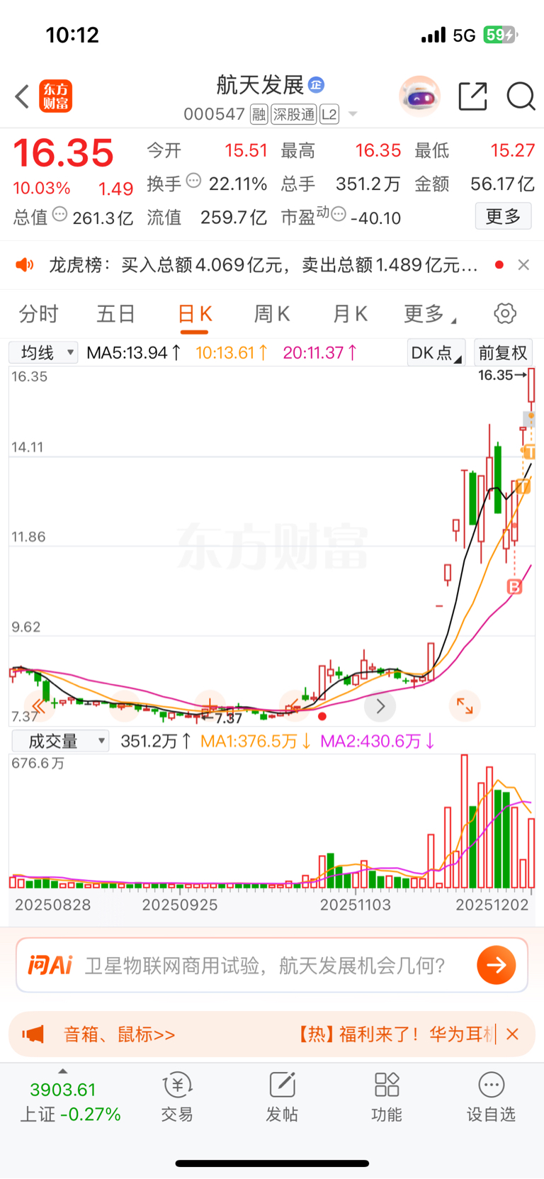 $航天发展(SZ000547)$ 做套完,就剩下五分之一仓位。搞了28个点知足,今天量有点大。基本底仓出清了,抄底了万华化学就这样吧。继续低调不发言