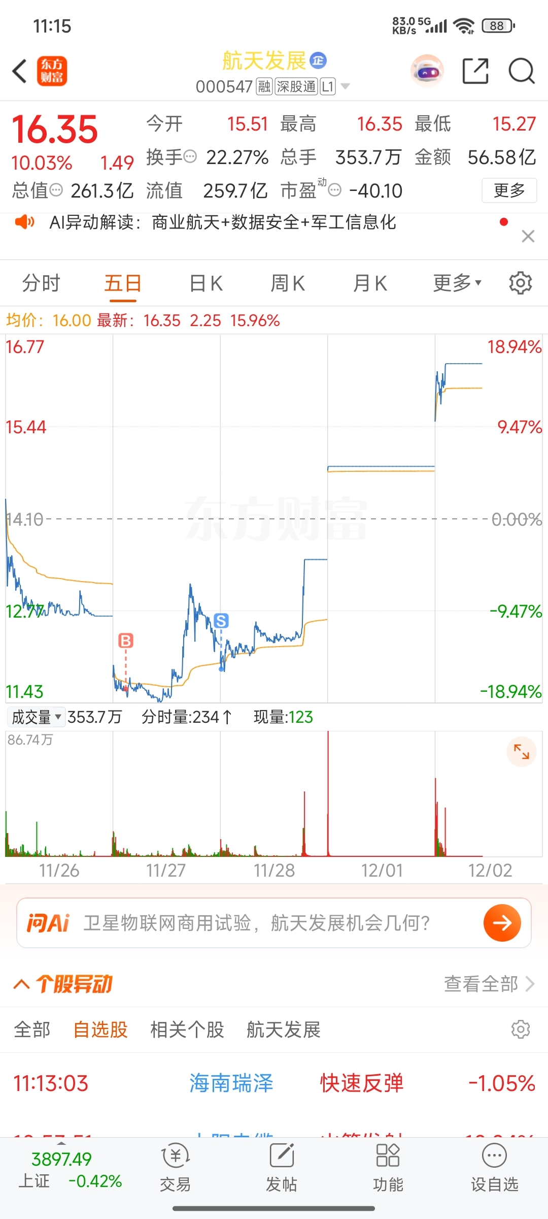 $航天发展(SZ000547)$ 看到你就觉得不舒服