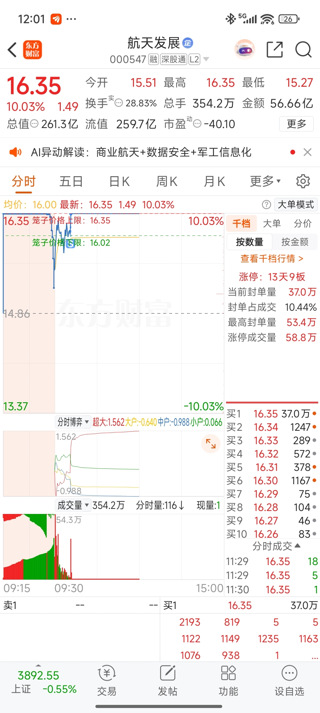 $航天发展(SZ000547)$ 留下发财,被洗了