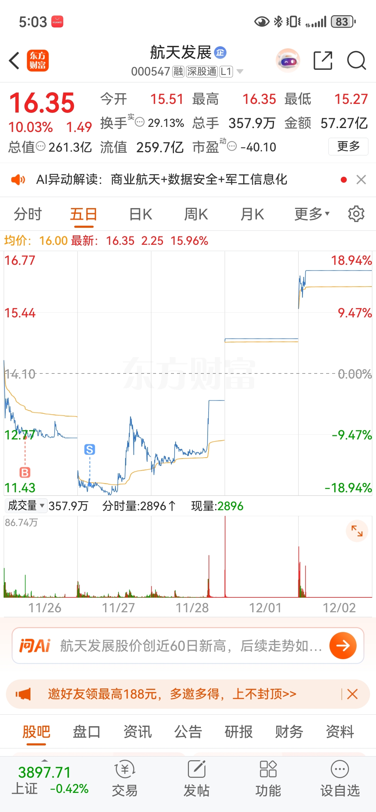 温馨提示: 1.根据《证券法》规定,禁止编造、传播虚假信息或者误导性信息,扰乱证券市场;2.用户在本社区发表的所有资料、言论等仅代表个人观点,与本网站立场无关,不对您构成任何投资建议。用户应基于自己的独立判断,自行决定证券投资并承担相应风险。《东方财富社区管理规定》