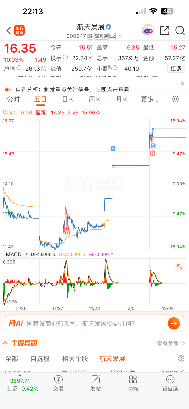 $航天发展(SZ000547)$ 继续格局,不到20不卖!